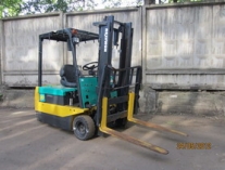Электрический вилочный погрузчик. Приводятся в движение при помощи тягового аккумулятора.